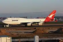 The City of Canberra remained in service with Qantas until January 2015, when it was retired as part of the draw-down of the airline's fleet of 747s.[9] While in service with Qantas, the aircraft operated more than 13,000 flights, and carried more than three million passengers.[10] Its last passenger-carrying flight was from Johannesburg to Sydney on 13–14 January 2015.[10][11]