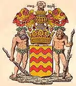 ![]() Crest: On a crest coronet Or, a goshhawk wings displayed Proper, armed and belled Or, jessed Gules | |||