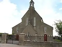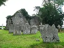 Saint Colman's church is situated at the centre of the parishes and Saint Colman is considered the patron saint of Clara. St.Colman's church is actually located just within Rathgarvan townland and not the neighbouring townland of Churchclara, wherein lie the remains of the old church of Clara.[3] St. Colman is a common saint's name in Ireland. The Martyrology of Donegal lists ninety six saints of this name and the Book of Leinster records two hundred and nine. In addition there seems to be some confusion in ancient texts between Colman (Colmanus in Latin) and Columbanus.[4]
