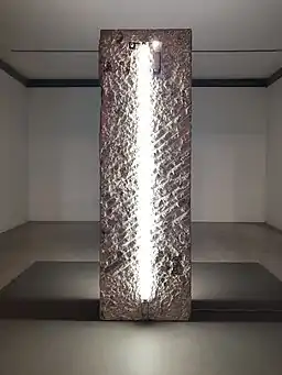 Menéres worked in stone, plastic, metal, neon and embroidery, among other materials. Her subjects ranged from feminist and erotic art in the 1960s and 1970s, to religious art in the later years of her life. In 1977 she made Woman-Earth-Mother, a powerfully symbolic work which is now unanimously considered as a fundamental of feminism in Portugal, combining the political consciousness of gender with the vocabulary of international pop art, in an explicit representation of the sex of a woman. In the 1980s she became known as the "light sculptor" for the use of light in her work. Her last works included sculptures for the Sanctuary of Fátima and a statue of Pope John Paul II.[1][3]
