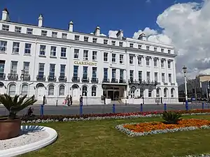 The Grade II* listed 70-room hotel adjoined the 159-room Burlington Hotel to form a grand white-washed row known as the Grand Parade.[4] Both hotels were originally terraced houses, with the Burlington spanning 13 houses.[5]