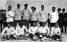 Football was introduced to Madrid by the professors and students of the Institución Libre de Enseñanza. They included several Oxbridge graduates. In 1897 they founded Football Sky, a club that played on Sunday mornings in Moncloa. In 1900 a split within this club saw the emergence of a new club that would later become Madrid Foot-Ball Club and a new split in 1901 resulted in "Club Español de Madrid".[2] However, the club's lifespan was cut short when it was forced to cancel its activities in the summer of 1903, remaining unknown if due to disagreements, slipt or members leaving to form other clubs. The club was refounded a few months later, in October 1903, by several players who had left Madrid FC to form their own club, among whom were the Giralt brothers (Mario, José and Armando) and Antonio Neyra, who become the first team captain of the club after its revival.[3]
