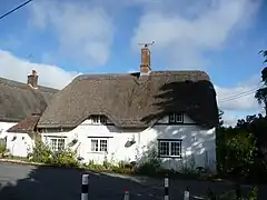 There was a small chapel and windmill at Woodhill in the 14th century. The name Woodhill derives from a corruption of 'woad', as the location is a 'hill where Woad grows' – woad being a plant which gave a blue dye for fabric.[9] Woodhill Park is a Georgian country house built in the 18th century. Richard Pace added the southeast range in 1804.[3] Northwest of the house is the site of the medieval village, including evidence of a moated manor house. The site is a scheduled ancient monument.[10]