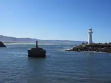 The shallowness of the entrance to the Hunter River continued to be a limitation on shipping into the 1920s[51] and a hazard during bad weather.[52] Work continued to improve the river mouth, during the 1930s, culminating in the excavation of a deep channel 600 feet wide, with 27 feet of water depth, effectively removing the rock bar at the river's mouth.[53][54] The improvements to the river entrance were a major engineering project for their time and a paper on the work won a Telford Premium award from the Institution of Civil Engineers for Percy Allan in 1921.[55]