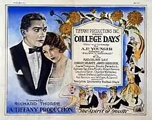 College Days is a 1926 American silent romantic comedy film directed by Richard Thorpe and starring Marceline Day, Charles Delaney, and James Harrison.[1][2][3] It was produced by the independent Tiffany Pictures.[4] The film's sets were designed by the art director Edwin B. Willis.