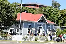 Saint Cuthberts was completed in 1873 and built on land believed to have been donated by the town's founder William Gibbs. Local labour and timber were donated to complete the church. Thomas Brunner designed the church. The church having survived unscathed from the many fires that have damaged Collingwood is a New Zealand Heritage category 1 listed building.[15] The church suffered some minor damage from vandals who were caught and prosecuted in 2011.[16] The church seats approximately 50 people. The congregation numbered approximately 20–25 persons in 2016.[17]