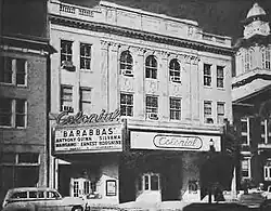 In the early 1960s, the theater was closed for a major renovation. Its front facade was cleaned and painted, the lower facade retiled, and a new marquee was installed. The interiro was fitted with new theater seats, new capeting, and which were installed on the first floor along with new carpeting and gold and blue draperies; the walls were re-plastered and a new ceiling was installed. Two new lounges were added to the main floor and a new RCA stereo sound system was added. The grand opening in October 1962 was the film Barabbas.[2]