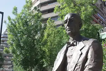 The Spanish classical composer Manuel de Falla (1876–1946) was the principal organizer of the Concurso.[3] He sought to encourage and enhance the music of cante jondo (literally "deep song", referring to a key element of flamenco, as opposed to "cante chico", the "lighter" more accessible element), which he sensed had fallen into a period of decadence.[4] Falla simply recognized in flamenco an art form of great beauty and drive. The composer had devoted years developing his intuitive ability to craft its stream of color, to etch it shimmering contours in classical scores.[5] He had heard its refrains since his gaditano childhood, from friends of the family, Gitano cantaores and tocaores.[6][7][8]