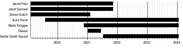 The stable was formed at the SuperFight event on February 2, 2019 when Fatu and Samael made their MLW debut and formed their alliance with Gotch by attacking his opponent Ace Romero.[3] The group made its televised debut at Intimidation Games and dominated MLW roster throughout the year, becoming the top villainous group of the company.[4] The group cemented its dominance over MLW when Fatu won the World Heavyweight Championship at Kings of Colosseum on July 6, 2019.[5] Ikuro Kwon was added to the group as its fourth member in August.