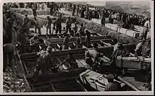 A phone conversation about the battle was intercepted by the Irgun, in which it was heard that many were killed and some were wounded.[5] After no word of the 35 had been received for a long time and wounded Arabs started arriving at Hebron, the British dispatched a platoon of the Royal Sussex Regiment to investigate. After threatening and exhorting the village mukhtars and notables, the British were led to the site of the battle where they found the bodies of the 35. According to some reports the bodies had been mutilated beyond recognition.[2]
