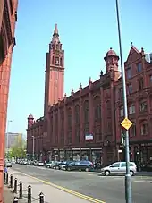 ![]() Southward view along Corporation Street – the two terracotta buildings are Victoria Law Courts to the left and the Methodist Central Hall to the right | |
