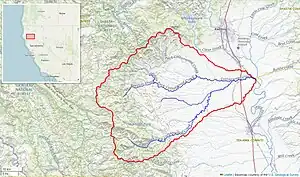 Cottonwood Creek is a major stream and tributary of the Sacramento River in Northern California. About 68 miles (109 km) long measured to its uppermost tributaries, the creek drains a large rural area bounded by the crest of the Coast Ranges, traversing the northwestern Sacramento Valley before emptying into the Sacramento River near the town of Cottonwood. It defines the boundary of Shasta and Tehama counties for its entire length. Because Cottonwood Creek is the largest undammed tributary of the Sacramento River, it is known for its Chinook salmon and steelhead runs.[2]