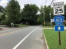 County Route 513 (CR 513) is a county highway in the U.S. state of New Jersey. The highway extends 66.83 miles (107.55 km) from Kingwood Avenue (Route 12) in Frenchtown to Lakeside Road (CR 511) in West Milford. South of Frenchtown, the road continues as Route 29. It is the third longest county route in New Jersey, following CR 519 and CR 527.