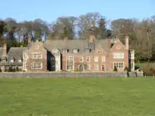 Creedy Park, Sandford, Devon, south front in 2014. This is the present house rebuilt in 1916-21