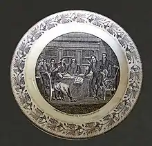After a lapse the manufacture of faïence fine at Montereau was resumed in 1774 by an English partnership, Clark, Shaw et Cie, succeeded by Hall and Merlin-Hall, who found a new rival, 1796 - 1805, in another English entrepreneur, Christopher Potter (1751-1817). Potter first introduced in France the English technique of transfer printing from copperplate engravings onto earthenware and porcelain. This innovation transformed the pottery of Montereau from an artisanal phase to a proto-industry. Between 1805 and 1815, to avoid conflicts with the pottery of Merlin-Hall at Montereau, Potter set up works in a former tile manufactory nearby, at Cannes-Ecluse. In 1819 the proprietor of the competing manufactory at Creil bought out the owners of the Montereau works at a stiff price. The potteries at Montereau were fully incorporated with the works at Creil from 1840 to 1895 as the Faïenceries de Creil et Montereau. then in 1920 were hived off in association with the faience manufactory at Choisy-le-Roi,. The manufacture at Montereau finally closed in 1955, the abandoned works destroyed and the archives lost.[4]