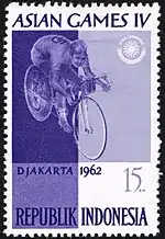 Cycling at the 1962 Asian Games on a stamp of Indonesia