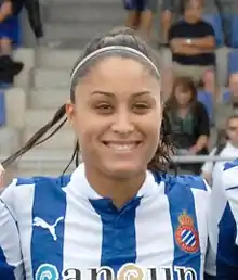 Débora García Mateo (born 17 October 1989), commonly known as Débora, is a Spanish footballer who plays as a midfielder for Primera División club Sevilla. In October 2012 she made her debut for the Spain national team at Glasgow's Hampden Park against Scotland in the 2013 European Championship's qualifying play-offs.[1]