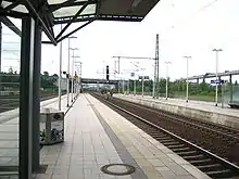 Düsseldorf Airport (Bahnhof Düsseldorf Flughafen) is a railway station in Düsseldorf, Germany on the Cologne–Duisburg line that connects Düsseldorf Airport to Düsseldorf-Stadtmitte and long-distance trains, most of them ICE trains. Opened in May 2000, the new railway station has the capacity of 300 train departures per day.