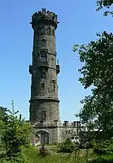 One of the first historical figures to visit Děčínský Sněžník was Emperor Joseph II of Habsburg, who climbed the peak in September 1779. The Sněžník was considered an important geodetic point for triangulation and cartographers asked the owner of the principality of Děčín, Prince Franz of Thun and Hohenstein, for permission to establish the peak as a triangulation point. Prince Franz contracted the Dresden architect, Karl Moritz Haenel, to design a stone observation tower. The construction of the Neo-gothic tower at the summit of the Sněžník began in 1863. A nearby fault line a source of building material, the tower was finished in autumn 1864. Originally used by geodesists, the view attracted many visitors and in 1865 the local forest administration decided to build a small hostelry for them.