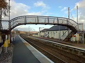 ![]() The footbridge and station buildings at Dalwhinnie | |