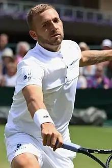 Daniel Evans (born 23 May 1990) is a British professional tennis player from England.[2] He has been ranked as high as world No. 21 in singles by the Association of Tennis Professionals (ATP), which he achieved on 7 August 2023, and is the current British No. 2 in singles.[3] He reached a career-high ranking of world No. 52 in doubles on 26 April 2021. In 2015, he formed part of the winning British Davis Cup team.