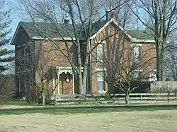 David Aikens House, also known as the Old Manse, is a historic home located at Columbus Township, Bartholomew County, Indiana. The house was built in 1877, and is a two-story, Italianate style cross-plan brick dwelling with a two-story, rear kitchen wing. It has a gable roof and sits on a limestone foundation. Also on the property is the contributing Nailed Frame Barn (c. 1905).[2]:5,10