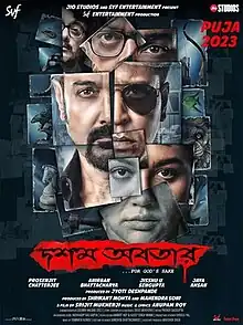 Dawshom Awbotaar...For God's Sake (transl.The 10th Avatar... For God's Sake) is an Indian Bengali-language neo-noir crime thriller film written and directed by Srijit Mukherji and produced by Shree Venkatesh Films and Jio Studios.[4][5] The film stars Jisshu Sengupta in the titular role and Prosenjit Chatterjee, Anirban Bhattacharya, and Jaya Ahsan in lead roles.[6][7][8] The film went on floors on 21 July 2023.[9][10][11][12][13][14]