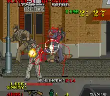 The port was faulted for jerky scrolling in the January 1990 issue of Computer and Video Games. Reviewer Paul Rand said that the slow movement hampered the otherwise fun gameplay and gave the game a 68%.[8] Despite this, Computer and Video Games subsequently published more positive reviews in their Complete Guide to Sega and Complete Guide to Consoles, rating it 83% and calling it an "Operation Wolf-style coin-op" conversion. They lauded the graphics and gameplay, calling it "easily one of the best shooting games on the Sega".[9][10]