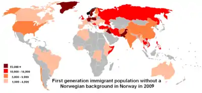 19. 1 2 3 4 5 6 7 8 9 10 "Immigrants and Norwegian-born to immigrant parents". SSB. Archived from the original on 26 May 2022. Retrieved 24 June 2022.