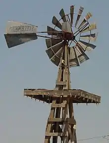 - ↑ Baker, T. Lindsay (2007). American Windmills, An Album of Historic Photographs. University of Oklahoma Press, Norman Oklahoma. p. 156. ISBN 978-0-8061-4249-4.