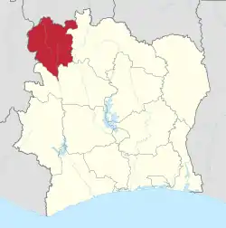 Denguélé District was created in a 2011 administrative reorganisation of the subdivisions of Ivory Coast.[3] The territory of the district was composed of the former Denguélé Region.[1]
