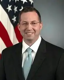 Derek James Mitchell (born September 16, 1964) is an American diplomat with extensive experience in Asia policy. He was appointed by President Barack Obama as the first special representative and policy coordinator for Burma with rank of ambassador, and was sworn in by Secretary of State Hillary Clinton on October 2, 2011. On June 29, 2012, the U.S. Senate confirmed him as the new United States Ambassador to Burma.[1] On September 4, 2018, Mitchell succeeded Kenneth Wollack as president of the National Democratic Institute, a position he served until September 2023.[2][3]