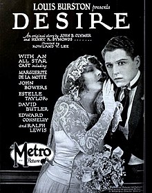 Desire is a 1923 American silent drama film directed by Rowland V. Lee and starring Marguerite De La Motte, John Bowers, and Estelle Taylor.[1] The film's sets were designed by art director John Hughes.[2]