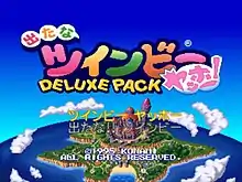 Detana TwinBee Yahho! Deluxe Pack[lower-alpha 1] is a 1995 two-in-one video game compilation developed and published by Konami for the PlayStation and Sega Saturn. It is the second Deluxe Pack release following Gokujō Parodius Da! Deluxe Pack, which included both Parodius Da! and Gokujo Parodius.[1] Part of the TwinBee series, it includes the original arcade versions of both Detana!! TwinBee and TwinBee Yahho!.[2] In both games, players assume the role of Light and Pastel taking control of TwinBee and WinBee to defeat invading forces of the evil alien Iva and Archduke Nonsense to save planet Meru and the Land of Wonders island after receiving an SOS message sent by princess Melora and Queen Melody.