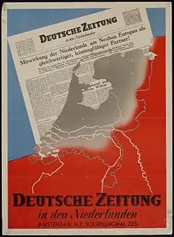 The Deutsche Zeitung in den Niederlanden (DZN, German Newspaper in the Netherlands) was a German-language nationwide newspaper based in Amsterdam, which was published during almost the entire occupation of the Netherlands in World War II from June 5, 1940 to May 5, 1945, the day of the German capitulation in the "Fortress Holland".[1] Its objective was to influence the public opinion in the Netherlands, especially the one of the Germans in this country (residents, staff working for the occupying power, soldiers).[2]