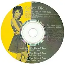 2. "Celine Dion - Did You Give Enough Love (1993, CD)". Discogs. Retrieved 8 June 2023.
