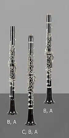 Clarinets of different tunings with the German and the French fingering system (Oehler system and Böhm system) are made to order. as well as those with the Reform Boehm system and also Hybrid clarinets.[1] Various models are available in grenadilla, mopane,[6] cocobolo and boxwood. By default, the instruments are tuned to 442 to 443 Hz for concert pitch A, but several other tunings are available on request. Versions for left-handers can also be made.[7] Unique in the world is an alto clarinet that reaches (notated) low C, like a basset horn.