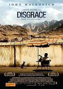 Disgrace is a 2008 Australian film,[1] based on J. M. Coetzee's 1999 novel of the same name. It was adapted for the screen by Anna Maria Monticelli and directed by her husband Steve Jacobs.[2] Starring American actor John Malkovich and South African newcomer Jessica Haines,[3] it tells the story of a South African university professor in the post-apartheid era who moves to his daughter's Eastern Cape farm when his affair with a student costs him his position. The film received generally positive reviews.