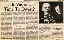 - ↑ David Rosenberg (8 June 1978). "Trustees vote for divestiture from backers of S. African government". Columbia Spectator. p. 1.