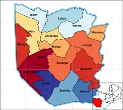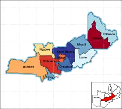 Muchinga Province is composed of 8 Districts,[9] with consideration of gazetting Chilinda area in Chinsali as the 9th district.[10]