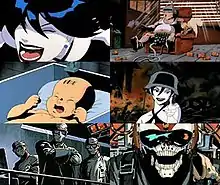 The animated music video for "Do the Evolution" was co-directed by Kevin Altieri, known for his direction on Batman: The Animated Series, and Todd McFarlane, better known for his work with the popular comic book Spawn and Korn's 1999 "Freak on a Leash" video.[11] The video was produced by Joe Pearson, the president of Epoch Ink animation, and Terry Fitzgerald at TME. It was written and developed by Pearson and Altieri with input from McFarlane and Vedder.[11] The total production time on the music video was 16 weeks.[11] The animation pre-production was produced by Epoch Ink Animation at their studio in Santa Monica. Under Altieri and Pearson’s supervision the Epoch team boarded and designed the short in less than six weeks.[11] Once McFarlane, Vedder, and Sony gave their final approvals, the designs were outsourced at Seoul to be animated at Sunmin Image Pictures and Jireh Animation. Over a four-week period, a team of over one hundred artists worked to deliver the finished animation.[11]