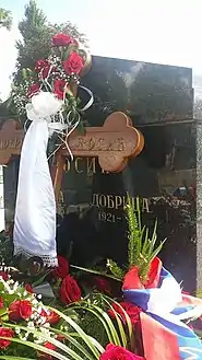 Dobrica Ćosić died on 18 May 2014 in his home in Belgrade at the age of 92.[21] He was interred in a family plot at the Belgrade New Cemetery next to his wife on 20 May 2014.[22]