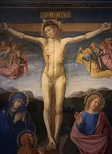 Donato Conte de' Bardi (Active 1426– died 1450/1451) was an Italian painter of the Quattrocento period. He was born in Pavia.[1] He is cited as a painter in Genoa in 1426. In 1433, he painted an altarpiece of the Crucifixion with the Magdalen and Saints for the Cathedral. Another Crucifixion with Saints was painted for the Ospedale di San Paolo in Savona. A Maesta was completed after his death by Giovanni Giorgio in 1451. His work shows some Flemish influences. His brother Boniforte was also a painter.[2]