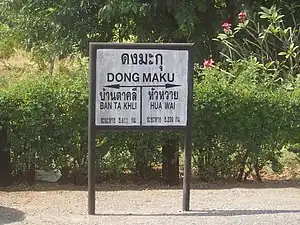 Dong Maku station (Thai: สถานีดงมะกุ) is a railway station located in Takhli Subdistrict, Takhli District, Nakhon Sawan. It is located 198.800 km from Bangkok railway station and is a class 3 railway station. It is on the Northern Line of the State Railway of Thailand.