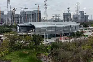 Dongchong Station (simplified Chinese: 东涌站; traditional Chinese: 東涌站; Cantonese Yale: Dūngchūng Jaahm) is an elevated station of Line 4 of the Guangzhou Metro.[1] It started operations on 30 December 2006. It is located at the junction of Jingzhu Expressway, Dongchong Avenue[2] and Maofeng Road[3] in Dongchong Town, Panyu District.[4]