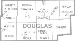 Douglas County was formed in 1859 out of Coles County. It was named for Stephen A. Douglas,[4] who was elected to the United States Senate in 1858, following the Lincoln–Douglas debates.