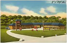 E. V. Yeager owned a sporting goods business on nearby Route 88, and in 1949 moved it to U.S. Route 1 (US 1),[3] to open the following year as the Down-East Village Motel, with a Gulf gas station. They leased the restaurant to Simpson's Hamburger.[4]