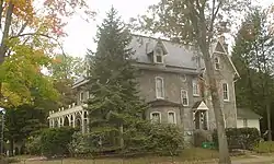 This residence, which was built in 1877, is a 2+12-story, gray stone house. Designed in the Gothic Revival style, it has a slate-covered intersecting gable roof, and features a verandah and conservatory.