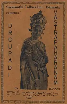 Draupadi Vastrapaharanam (transl.Draupadi's Disrobement) (Telugu: ద్రౌపదీ వస్త్రాపహరణం) is a 1936 Indian Telugu-language film directed by H. V. Babu, brother-in-law of noted filmmaker H. M. Reddy.[1] It was made to compete with Draupadi Manasamrakshanam (1936). This film was a major box office success, whereas Draupadi Manasamrakshanam failed. The film is remembered for the rendition of poems with acting performances by C. S. R. Anjaneyulu and Yadavalli Suryanarayana.[1]