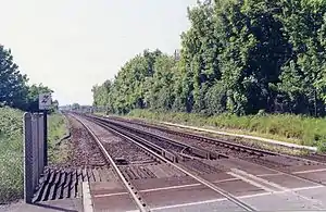 The site of the station, looking west from the level crossing, in 1992